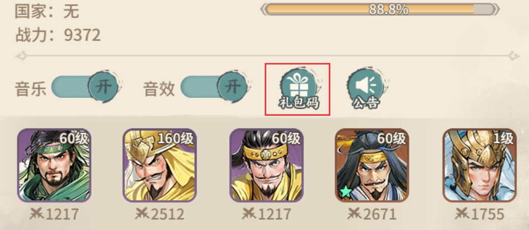 2、选择礼包码,输入兑换礼包。